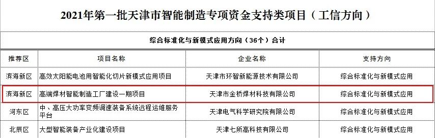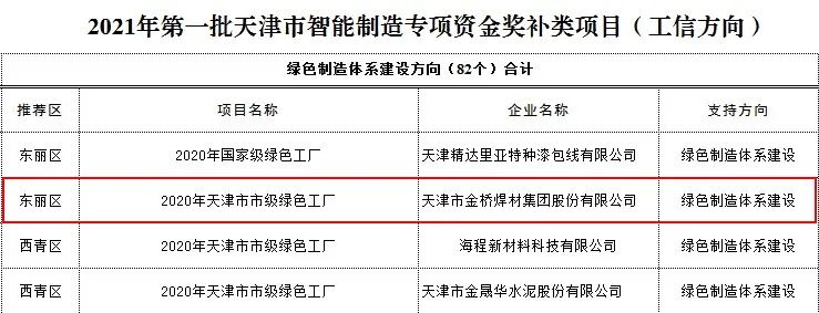金橋焊材集團(tuán)三項(xiàng)綠色智能方案入選2021年天津市首批智能制造專(zhuān)項(xiàng)資金項(xiàng)目