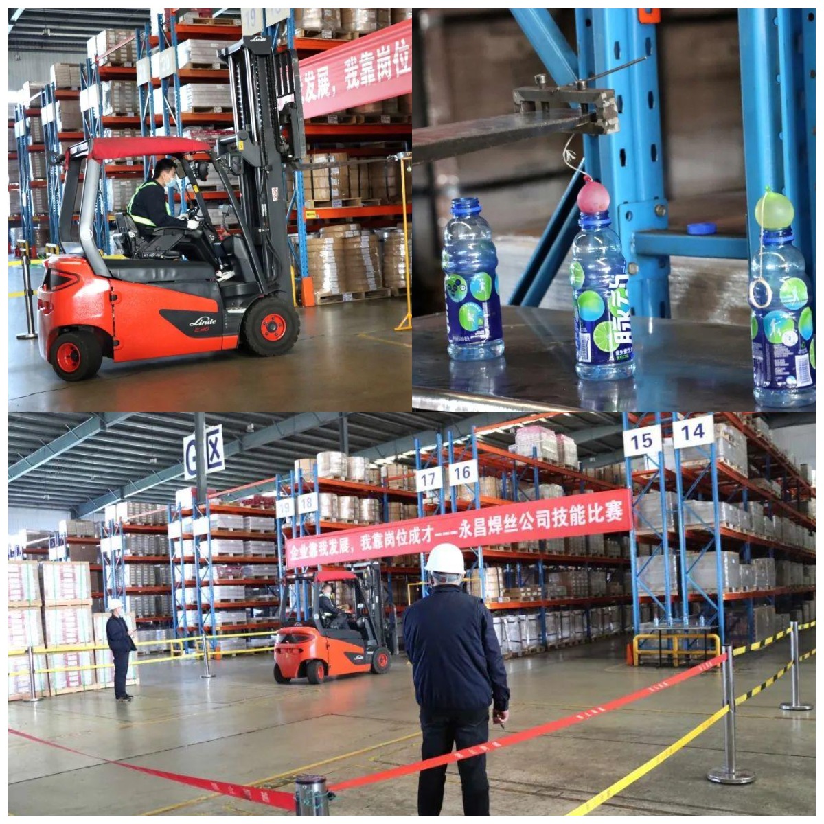 比賽現(xiàn)場秩序井然,參賽選手個(gè)個(gè)情緒高漲、躍躍欲試,力爭為自己的班組爭奪榮譽(yù),在自己的專業(yè)技能領(lǐng)域展開了一場場激烈地較量。東麗賽區(qū)物流組叉車工采用“瓶口碼水球”的比賽方式,考驗(yàn)選手操作叉車時(shí)對(duì)力度、準(zhǔn)度、精度的掌控程度。來自六經(jīng)路、五瑋路、七經(jīng)路的37名參賽選手,經(jīng)過預(yù)賽的激烈比拼,最終博出勝負(fù),由七經(jīng)路的李傳配以4分54秒的成績奪得第一。實(shí)心焊絲高速車間細(xì)拔掛車作為新項(xiàng)目,共有23名選手參賽,劉江濤以4分19秒的最好成績斬獲該項(xiàng)目第一名。