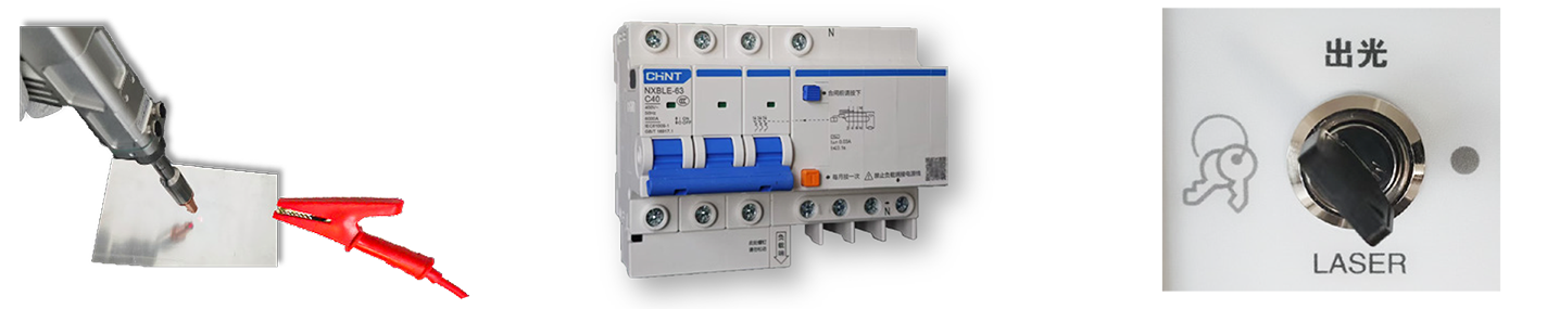 出光口接觸夾有安全地夾的工件時才符合出光條件,防止激光對工件以外的物體照射。符合T/CWAN 0064-2022中13.2要求。漏電保護: