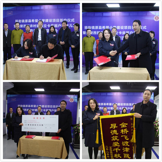 1月10日,捐助鎮(zhèn)原縣希望小學建設項目簽約儀式,暨關(guān)愛西部農(nóng)村建檔立卡貧困戶留守兒童專題座談會在金橋焊接培訓基地圓滿召開?;顒佑杉瘓F黨委副書記、金橋慈善基金會秘書長李紅梅主持。